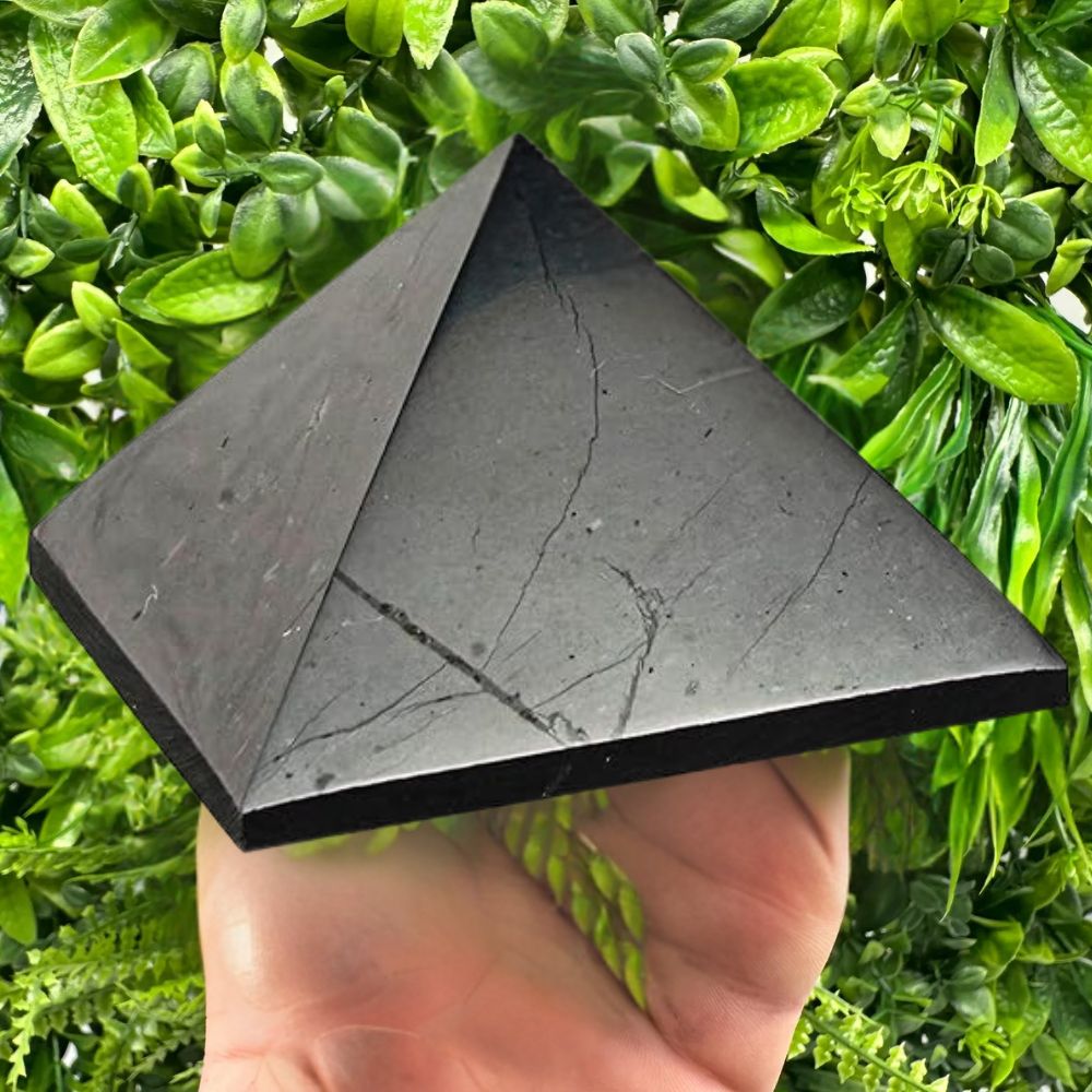 Crafted from durable genuine Type III Shungite. Black residue and golden streaks on the surface are normal and safe. Shungite protection pyramid: has a size of 2 inches (50 mm) with up to 7.5 feet Radius of Action